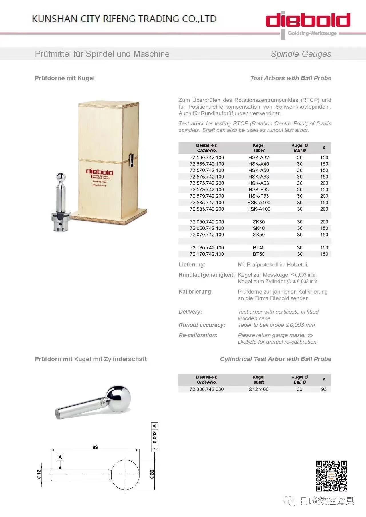 戴博球头测试棒72.560.742.100HSK-A32